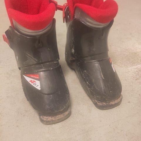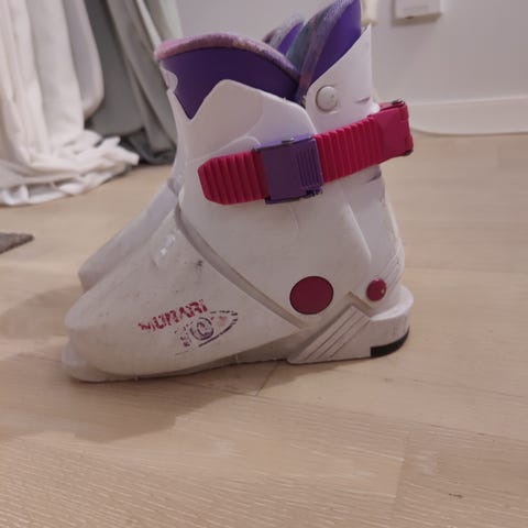 Pjärona är köpta från en skiduthyrning firma, därav telefonnumret bak på pjäxan