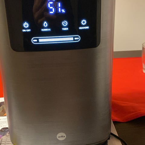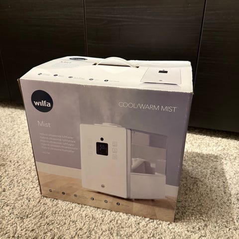Luftfuktare från Wilfa, rymmer 6 liter. Inbyggd hygrostat, producerar varm och kall ånga, kapacitet för ca 40 m2.