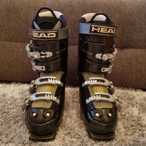 Fina sparsamt använda Head Formula 100 alpinpjäxor. Mycket skön, bekväm och varm pjäxa med ”extended toe box”. Svarta med 4 justerbara spännen och kardborre rem överst . Storlek 25/25.5. Nypris ca 3000 kr årsmodell 2023