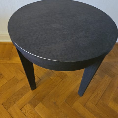 Svart pall med 3 ben, naturträ nedtill på benen som även är avrundade, se bild. ENDAST AVHÄMTNING