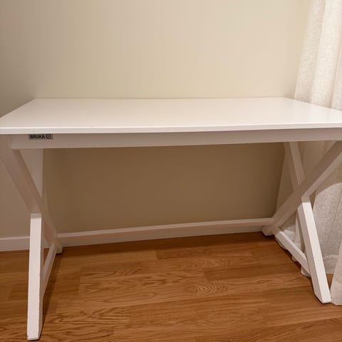 Båda är från IKEA. Bordet heter 'LINNMON/ADILS' och stolen är en äldre variant av 'RENBERGET'.