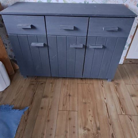 Vit träskänk med skåp och hyllor