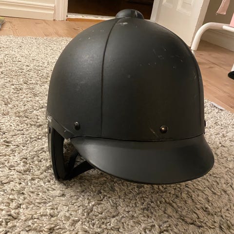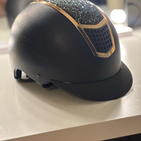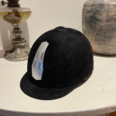 Wembley ridhjälm i svart färg. Hjälmen har storlek 58 och är tillverkad i material anpassat för ridning. Designad för att ge skydd och komfort vid ridning, i sammet material med en rosett på baksidan!