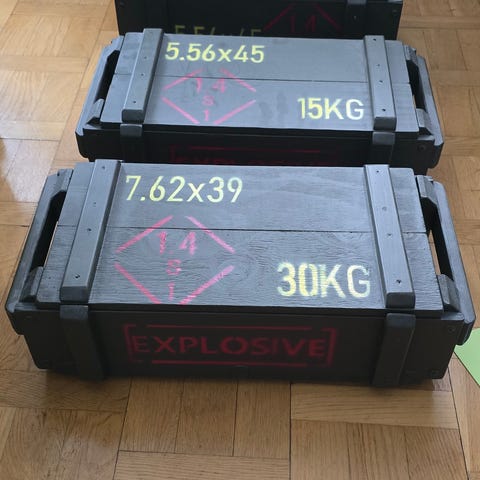 Militär ammunitionslåda i metall med grön färg. Lådan har en robust konstruktion med bärhandtag och låsfunktion. Används för säker förvaring och transport av ammunition, verktyg eller andra föremål.Höjd 18,5 cm, längd 30 cm o bredd 15,5 cm