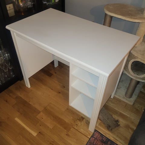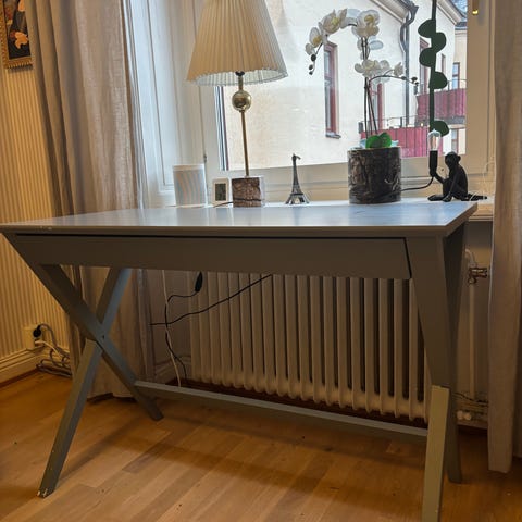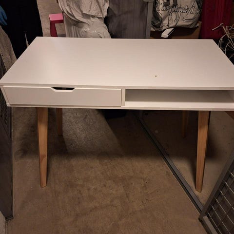 Fint litet skrivbord ’Tamhol’ från Jysk. Använt men i fint skick, finns lite skav på skivan och benen.