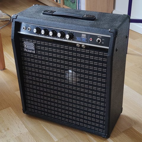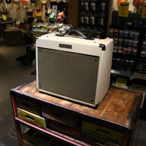 Roland Micro Cube gitarrtillbehör. Kompakt gitarrförstärkare med flera reglage för ton- och effektinställningar. Utrustad med in- och utgångar för anslutning av gitarr och andra enheter. Svart färg och bärhandtag för enkel transport.