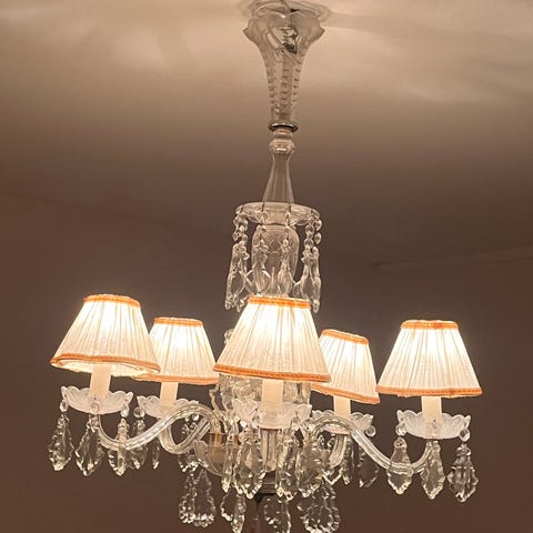Kristallkrona i fint skick. Fungerar som den ska. Inköpt på ljuspunkten.