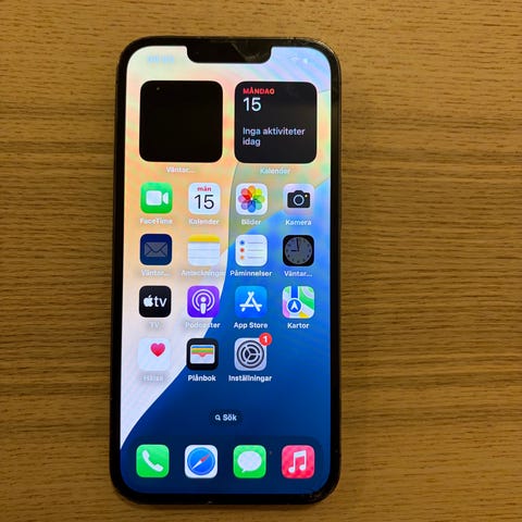 Apple iPhone 13 Pro med 128 GB lagringskapacitet. Mobiltelefon med modern design och funktioner från Apple. Batteriet byttes i våras i en liten butik i centrum.