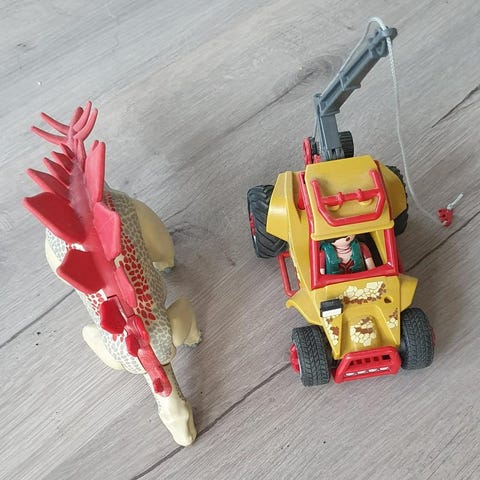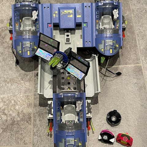 Playmobil rymdbil med tillbehör och två figurer. Instruktionsmanual medföljer.