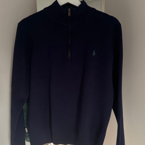 Polo Ralph Lauren - mörkblå stickad tröja med röda ränder, strl L