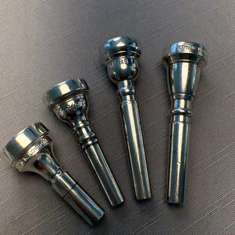 Denis Wick 5 trumpetmunstycke i väldigt fint skick, knappt använt men har några år på nacken. Oöppnad Helin rensborste för trumpet ingår på köpet.