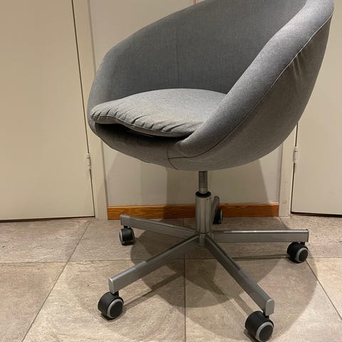 Höj och sänkbar samt snurrbar. Vit, ljust skinn, läderimitation.