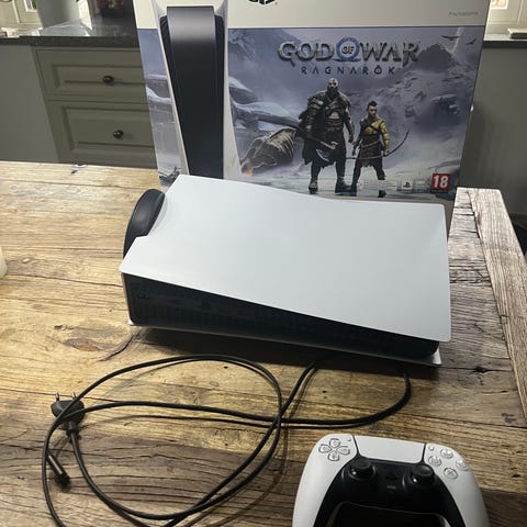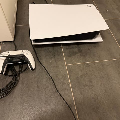 Sony Playstation 5 spelkonsol med en modern design och medföljande handkontroll. Ingen låda eller kvitto finns så därför priset!