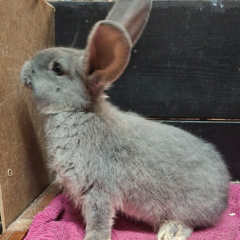Mamma gråfärgad dvärg vädur och pappa som är svart/vit, är en blandning dvärg vädur och belgisk jätte.