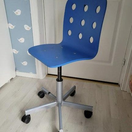 Grå skrivbordsstol för barn från ikea, går att höja och sänka.