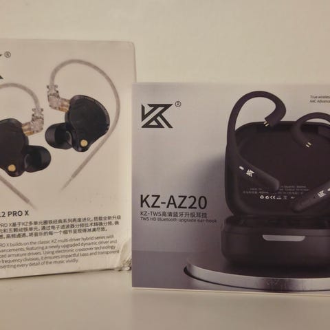 Säljer ett superbra paket för den som älskar att lyssna på musik med högre kvalitet. Linsoul KZ är ett måste för dig som vill ha hifi-ljud utan att behöva lägga ut alltför mycket pengar! Med detta kompletta paket kommer du långt. Detta följer med: ZSX pro IEMs med 12 element (6+6). Riktigt balanserat ljud med många detaljer. AN01 är en Bluetooth-mottagare med både ANC och LDAC. Förvandlar ZSX pro IEMs från trådbundna till att bli helt trådlösa med makalöst bra ljud! AM02 med USB-C-kontakt.Liten hörlursförstärkare med bra ljud och möjlighet att hantera röstsamtal. 4st olika eq lägen via knapp. Passar till iPhone och Android m.m.