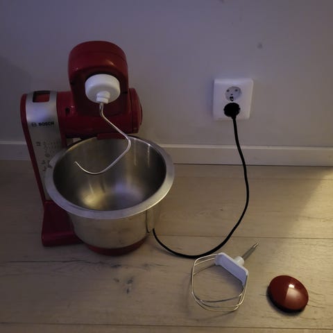 Bosch universal köksmaskin med rostfri skål och degkrok.