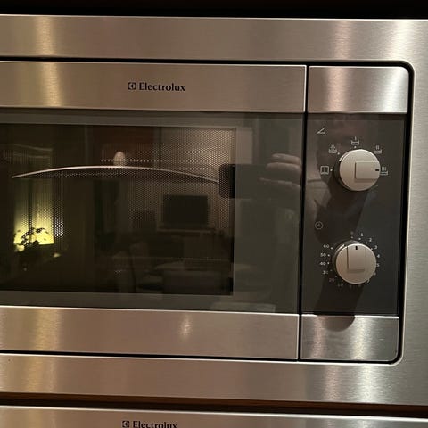 Electrolux inbyggd mikrovågsugn. Utrustad med digital display och reglage för inställning av tid och effekt. Inuti finns en roterande tallrik för jämn uppvärmning.
