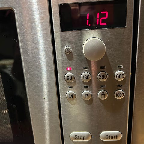 Mikrovågsugnens roterande glastallrik saknas, så priset är nedsatt med 100 kronor.