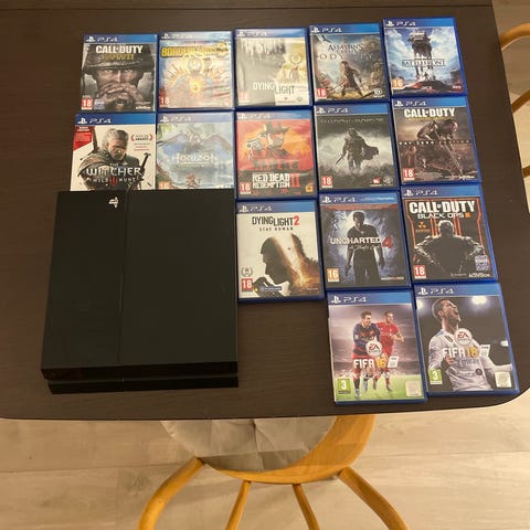 Playstation 4 Spelkonsol med två handkontroller och spel