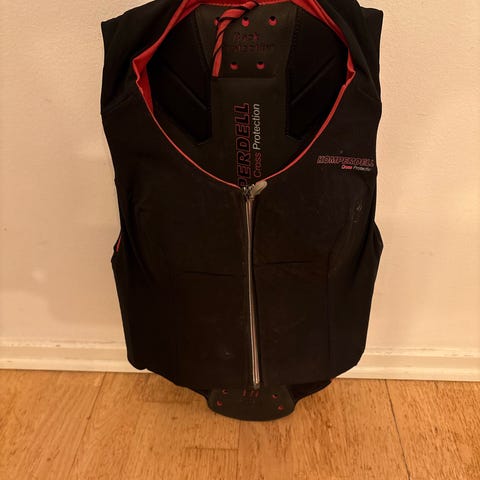 Säljer en Komperdell Säkerhetsväst i strl S slim fit. Endast använd 1 gång på tävling, ej avramlad i. Passar bra till min dotter som är ca 165.