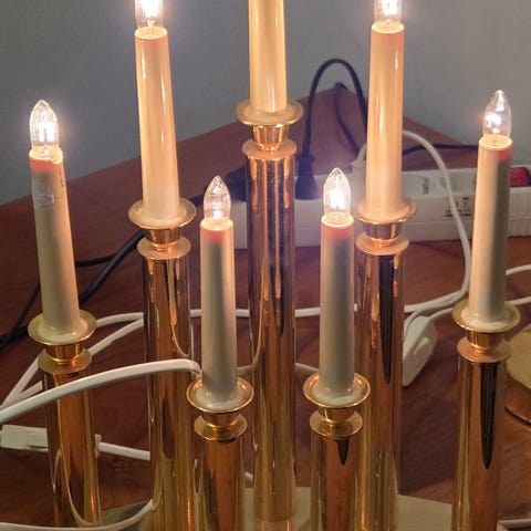 Det svarta smidet & formen av en traditionell Luciakrona med sju ljus och är mkt vacker i