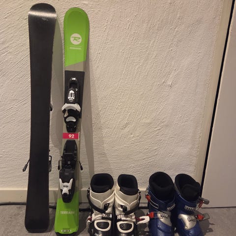 Alpinskidor 100 och 110 samt pjäxor