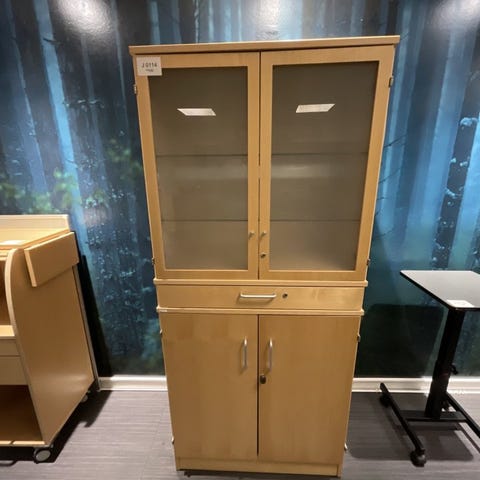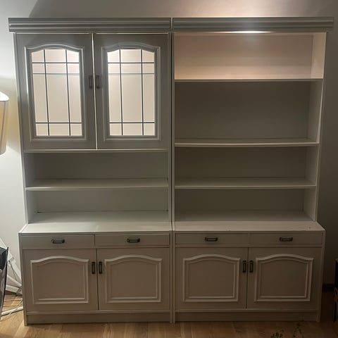 Vit bokhylla med glasdörrar, H 199cm, B 80cm, D 29 cm
