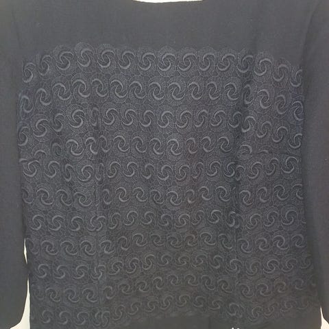 3/4-ärm, knappar hela vägen. Små axelvaddar, slits i sidorna, något längre baktill.