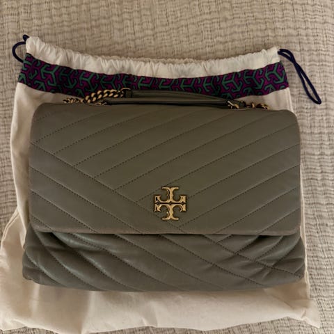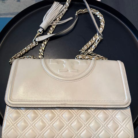 Tory Burch väska tillverkad i läder, avsedd för kvinna. Väskan har en svart färg och är designad för vardagligt bruk med hållbara material.