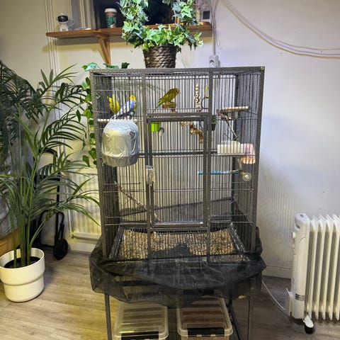 Säljer en stor och stabil fågelbur som passar utmärkt för parning/avel.