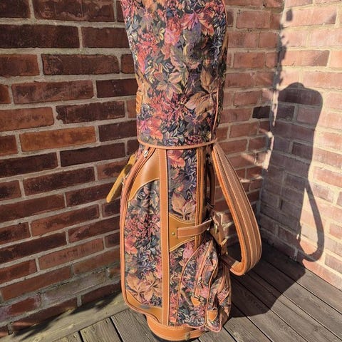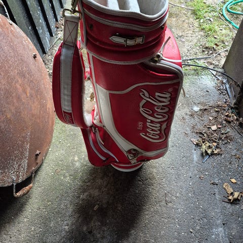 Säljer ett äldre retro golfset i klassisk Dynatour bag (röd/vit).
