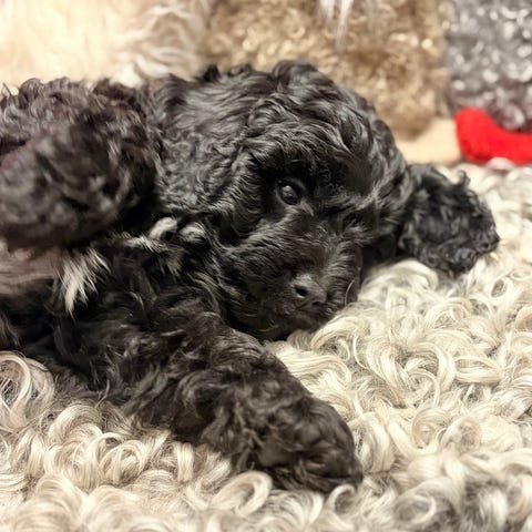 Vera är en jättefin svart Cavapoo tjej som är flyttklara till jul (19/12) när de blir 8 veckor. De kommer då att vara vaccinerade id märkta och besiktade, avmaskade försäkrade och dolda fel försäkrade i Agria.