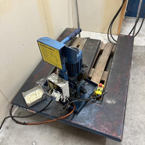 Lyftbord på 2Ton lyfthöjden är 1050mm längd på bordet är 1350 å bredden 900 bordet drivs av 400volt 16 ampere