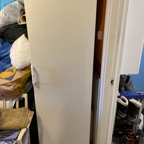 Whirlpool frysskåp med flera förvaringsfack och lådor för organiserad frysning. Vit färg och standardstorlek för hushållsbruk.