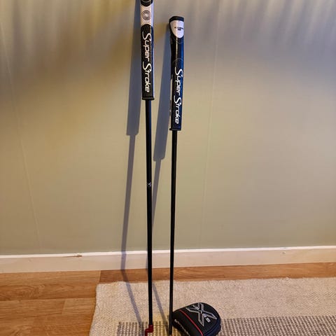 TaylorMade Spider Tour putter med metallhuvud och grafit skaft. Putterhuvudet har en silverfärgad finish med svart detaljering. Levereras med skyddande huvudöverdrag.