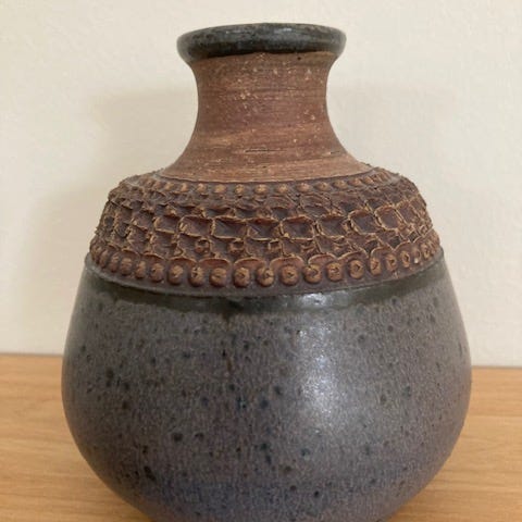 Vacker blå vas från Höganäs keramik i nyskick. Ca 9 cm hög. Värdering på auktion 200 kr. En vas till finns. Samfraktar gärna.