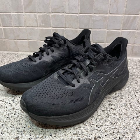 Asics löparskor i storlek 44, färg gul. Skorna är designade för löpning och har en ventilerande ovandel samt en stötdämpande sula för komfort under löprundor.