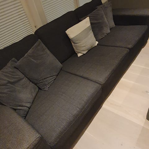 Soffgrupp, 4 sitsig ca 220 cm 3 sitsig ca 190 cm, fåtölj ca 100cm och fot/sitt pall.