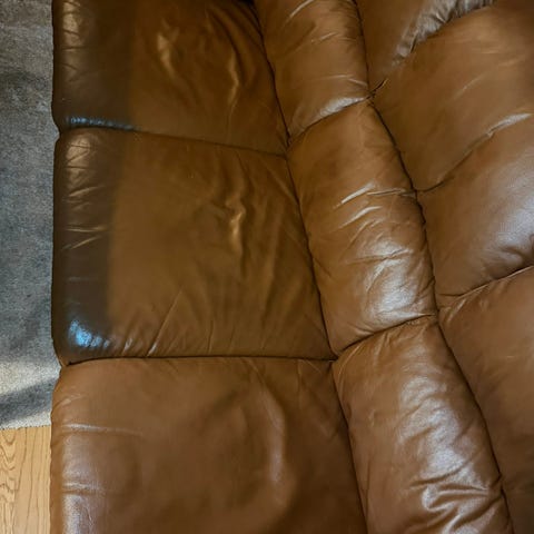Soffan är som ny mycket finare i verkligheten än på bilden behöver bli av med den så låg pris, helt i skinn, kommer från rök och djurfritt hem