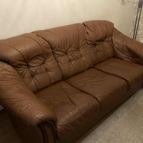 Brunt skinn och furustomme. Får att fälla ner - se bilder. I fint skick givet ålder.