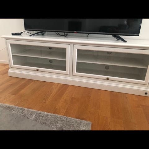 Säljer mycket vackra Tv bänk i Romersk still som. Tre hylla (finns glasskiva )