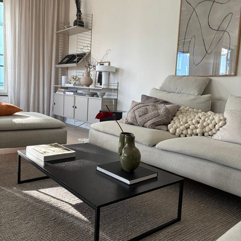Snyggt och stabilt soffbord / lounge-bord med svart ram och ljus kakelyta. Designmöbel som verkligen sticker ut – inte IKEA. Passar perfekt i modern vardagsrum, loft eller stilren miljö.