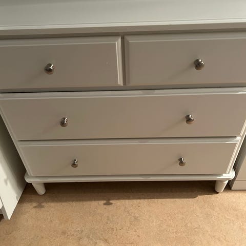 Två små märken på två av de stora lådorna (se bilderna) i övrigt inget att anmärka på utan den är i fint skick.