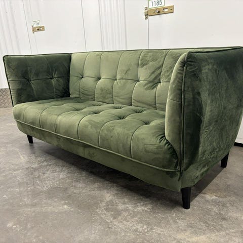 Stilren 3-sitssoffa i mörkgrön sammet