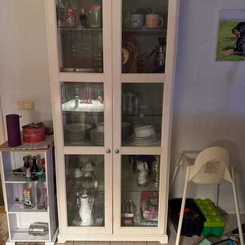 Vitrinskåp med hyllor. Bortskänkes, dödsbo. Först till kvarn