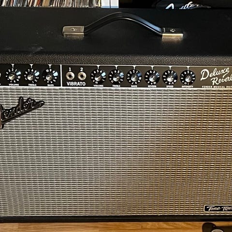 En Twin Reverb i bra skick, inköpt 2017 och väldigt sparsamt använd genom åren. Allt är komplett och funkar som det ska.