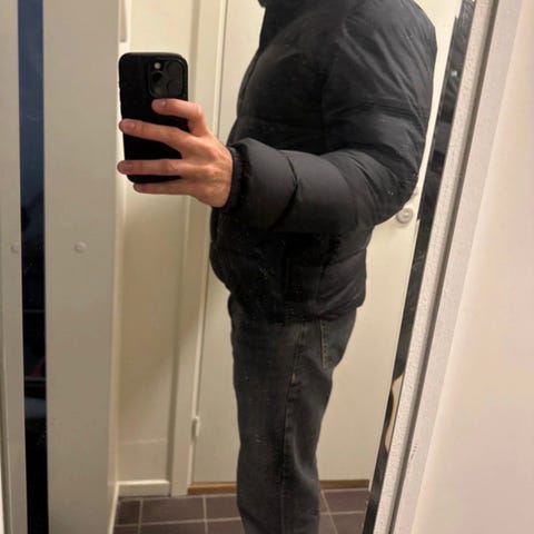The North Face jacka i storlek M, blå färg och tillverkad i dunmaterial. Jackan är avsedd för utomhusbruk och erbjuder isolering och värme.