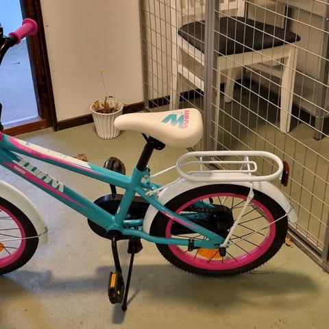 Trek barncykel med 20-tums hjul, färgerna rosa och lila. Cykeln har en korg framtill och ett pakethållare bak. Utrustad med handbroms och fotbroms. Däck med mönster för bra grepp. Passar barn. Med 3 olika växel alla funkar bra