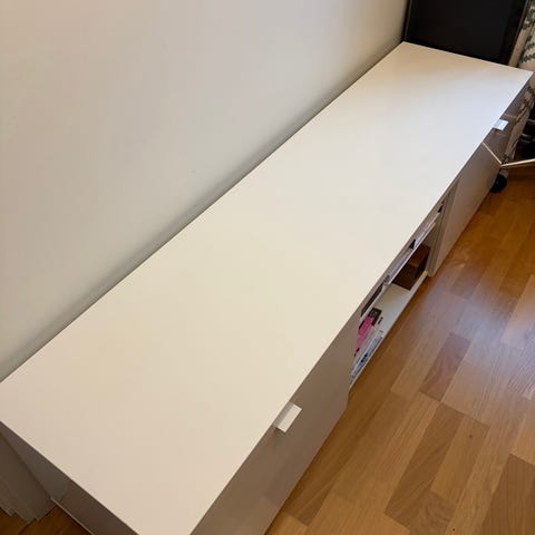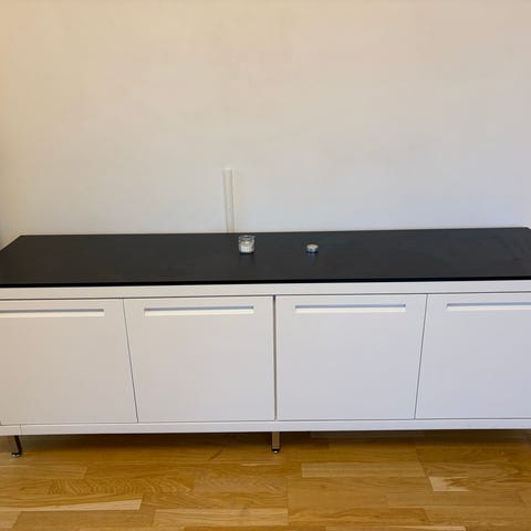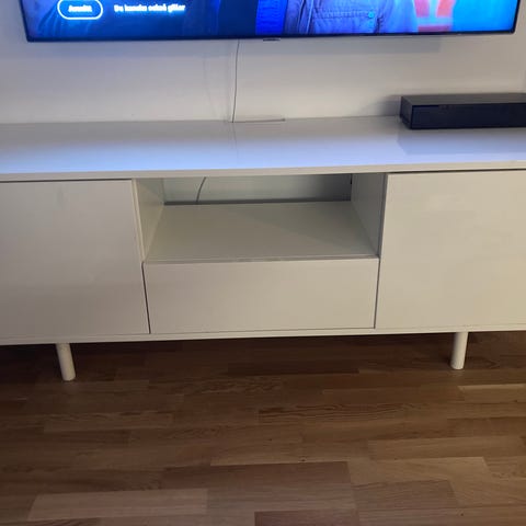 Vit tv bänk köpt från IKEA med gott skick. Längd på bänken är 120 cm.